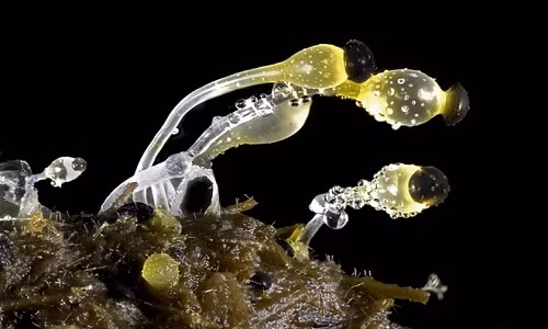 Trên hình là cảnh tượng nấm pilobolus mọc trên phân bò đang phát tán bào tử do Michael Crutchley, nhiếp ảnh gia người Anh, chụp với độ phóng đại 30 lần.