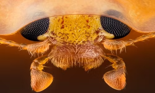 Bức ảnh đầu con bọ rùa màu cam của kỹ sư điện tử Geir Drange với độ phóng đại 10 lần.