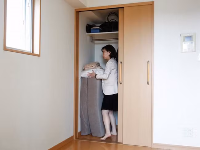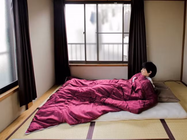 Người Nhật Bản ngủ trên những tấm nệm có thể thu gọn vào khi không dùng đến.