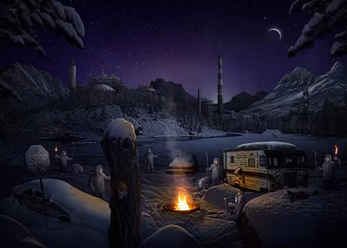 Sau đó, anh tiếp tục khắc họa về một thế giới tương lai với các thảm họa là sự nóng lên toàn cầu gây biến đổi khí hậu, sự cố hạt nhân... do chính con người gây ra và kết quả dẫn đến là con cháu mai sau trở về thời nguyên thủy.