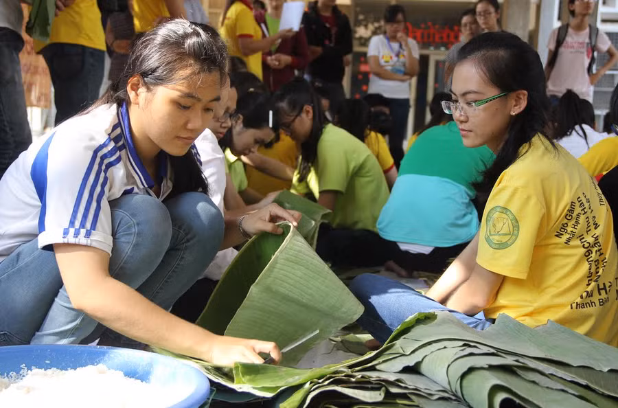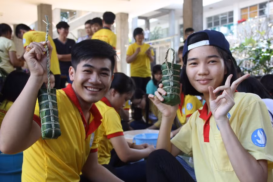 Dưới đây là chùm ảnh Ngày hội gói bánh Tét của SV Trường Đại học Y Dược TPHCM: