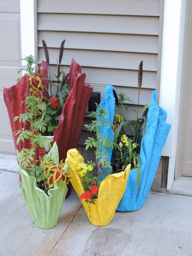 Nghe đã thấy vô lý vì ai mà tin được khăn cũ tưởng chỉ có thể làm giẻ lau hoặc vứt đi lại có thể làm thành chậu cây đẹp không kém gì nghệ nhân làm.