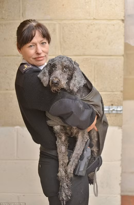 Theo các nhân viên thuộc Hội Hoàng gia Phòng chống ngược đãi động vật (RSPCA), 9 chú chó trên bị bỏ rơi ngay bên đường, lông của chúng dính đầy bùn đất và còn mọc dài đến mức khiến chúng không thể thấy đường. Hơn thế nữa, những chú chó này cũng gặp khó khăn trong việc đứng lên.