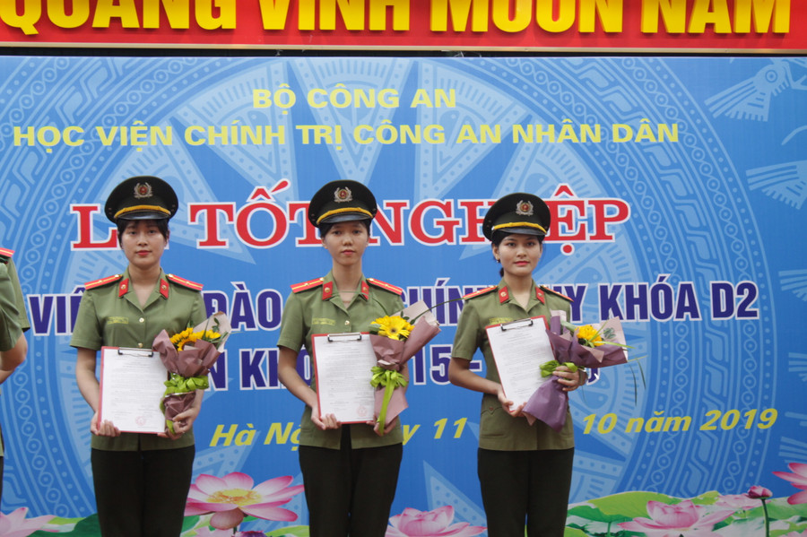 Trong buổi lễ tốt nghiệp khóa D2 của Học viện, những cô gái trong bộ quân phục không chỉ khỏe khoắn, mạnh mẽ mà vẫn dịu dàng, nữ tính khiến nhiều người chú ý.