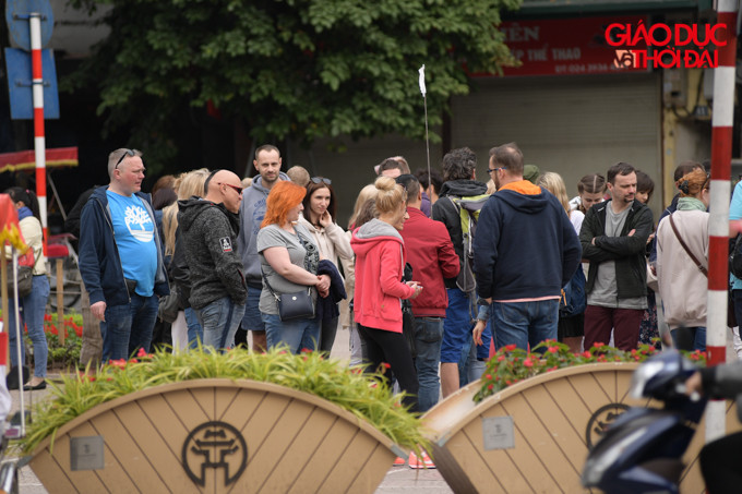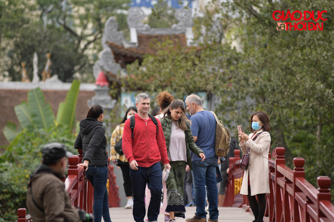 | Tại di tích Văn Miếu- Quốc Tử Giám đoàn khách du lịch nước ngoài vào thăm quan đã đông trở lại. |