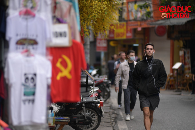 | Nhiều khách du lịch vui vẻ đi dạo trên những tuyến phố mà không đeo khẩu trang. |