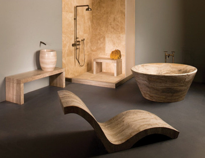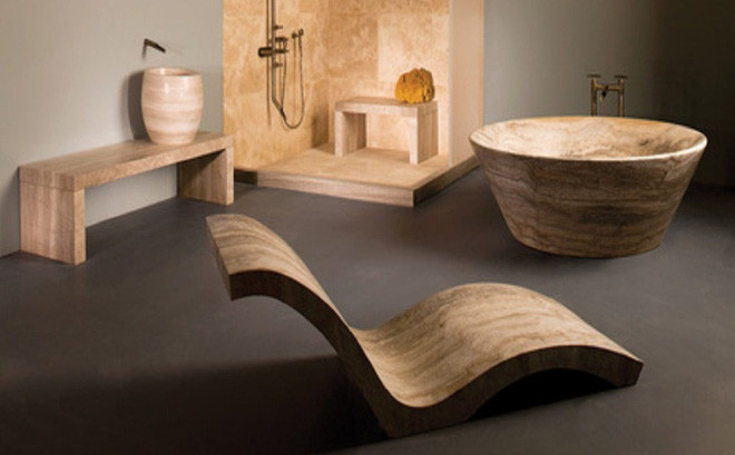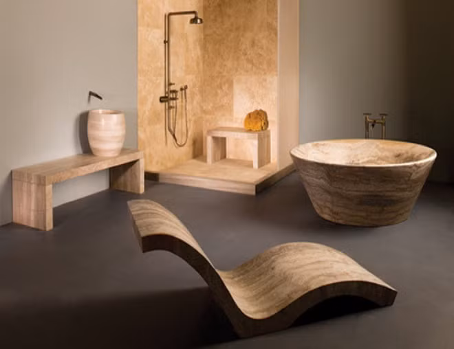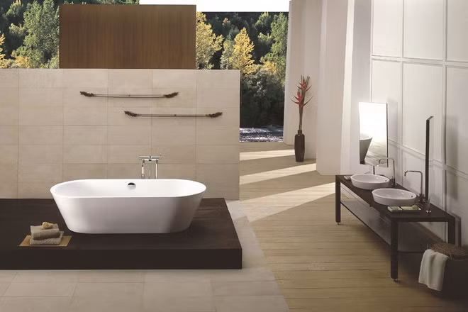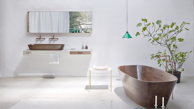 Sử dụng chủ yếu là chất liệu gỗ, sứ và đá cho bồn tắm