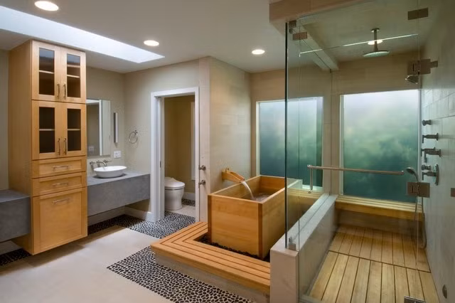 Để giữ vệ sinh tuyệt đối cho phòng tắm, cũng như để tạo nhiều lựa chọn cho mọi người trong gia đình, người Nhật thường chọn phương án tách biệt phòng tắm với phòng vệ sinh.