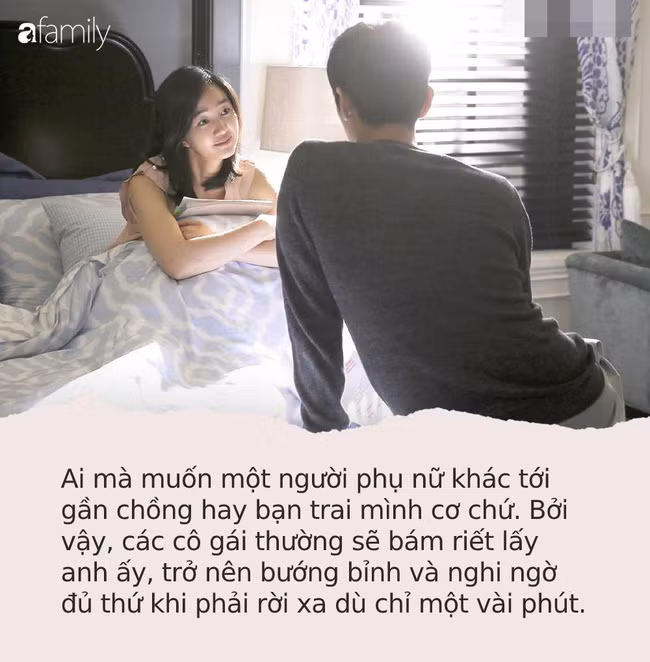 Ai mà muốn một người phụ nữ khác tới gần chồng hay bạn trai mình cơ chứ. Bởi vậy, các cô gái thường sẽ bám riết lấy anh ấy, trở nên bướng bỉnh và nghi ngờ đủ thứ khi phải rời xa dù chỉ một vài phút.