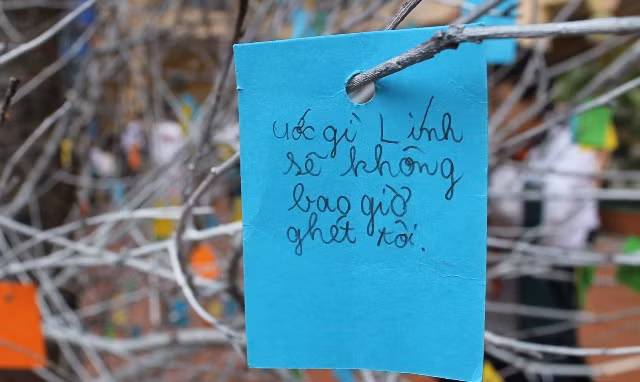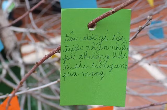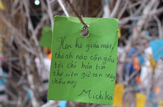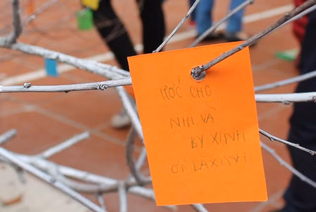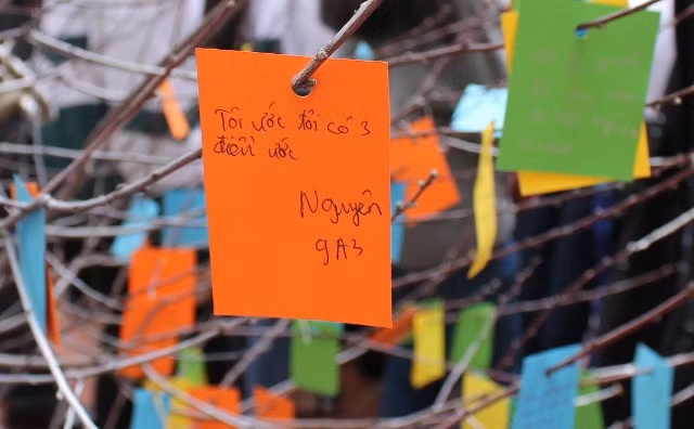 | Cây điều ước do Đoàn trường làm và trưng bày. |