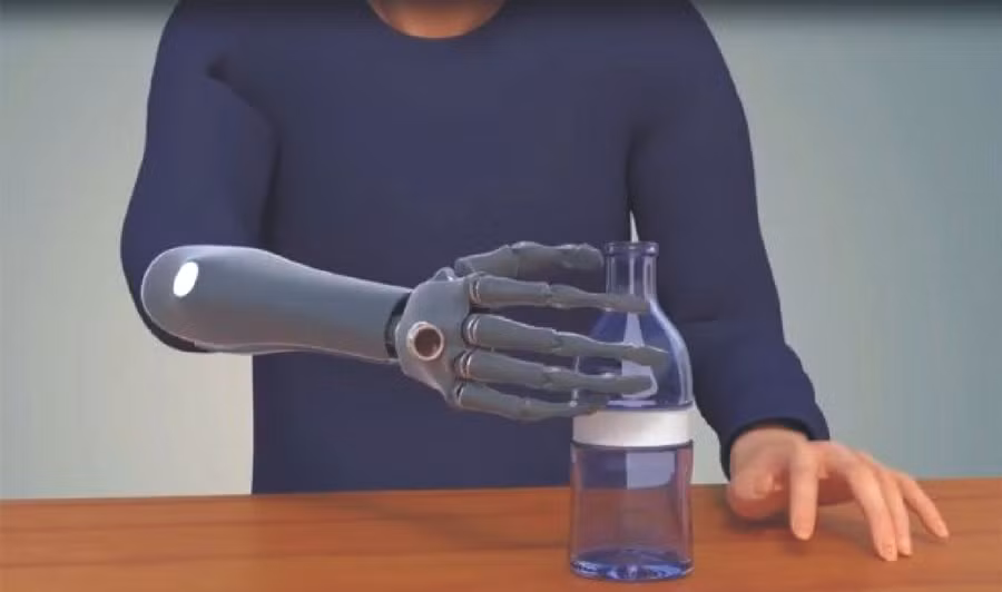 Cánh tay giả này sử dụng trí tuệ nhân tạo để “nhìn” đồ vật. Người mang cánh tay sinh học có thể lấy đồ vật tự do nhờ vào xung điện được kích thích ở tay.