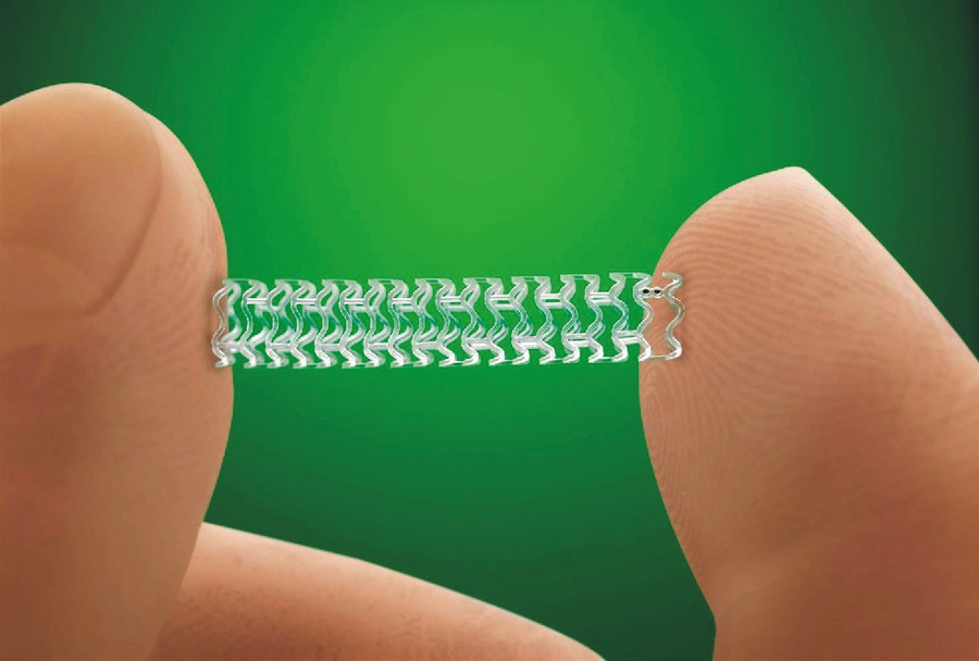 Hàng năm, khoảng 600.000 người đặt một cái stent bằng kim loại ngay trong ngực của họ dùng để điều trị tắc nghẽn động mạch vành. Hầu hết thì những cái stent được giữ vĩnh viễn trong lồng ngực sau khi ca phẫu thuật hoàn tất. Thế nhưng chúng lại gây khó khăn cho những đợt phẫu thuật trong tương lai hay có thể gây nên những dạng biến chứng khác, như máu đóng cục. Nhưng nếu không có những cái stent thì tình hình sẽ như thế nào? Tháng 7 năm 2017, cái stent hấp thụ sinh học đầu tiên đã được phê chuẩn hoạt động tại Mỹ. Nó làm hoàn toàn từ Polymer nên có thể hòa tan tự nhiên, cái stent này sẽ nở rộng trong động mạch trong khoảng thời gian 2 năm trước khi nó thẩm thấu vào trong cơ thể tương tự như một vết thương tự động liền mí. Các chuyên gia tin rằng tiềm năng thị trường của loại stent hấp thụ sinh học sẽ đạt khoảng 2 tỷ USD và nó sẽ xuất hiện đại trà trên toàn thế giới trong vòng 6 năm tới.