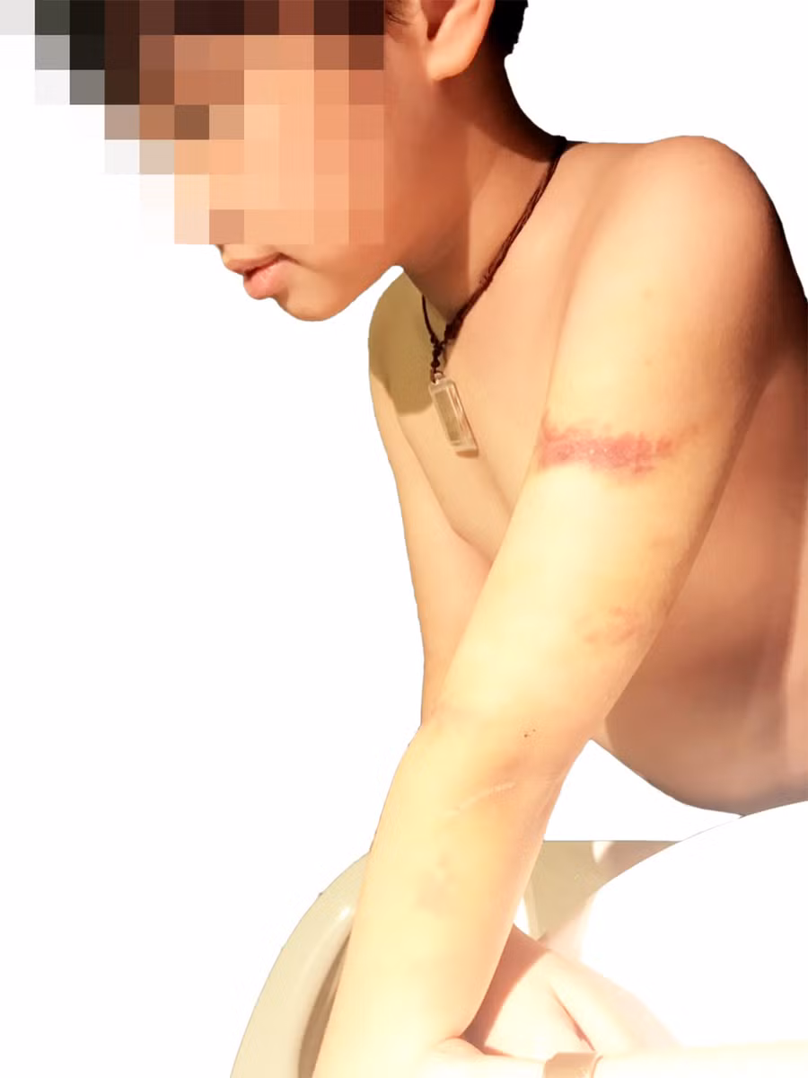 Lần 3, tháng 3/2018, chịY. vào thăm con lần 3. Hôm đó là sau Tết Âm lịch. Khi dẫn con đi mua mấy bộ quần áo, chị Y. phát hiện trên khắp người con có rất nhiều vết bầm tím.