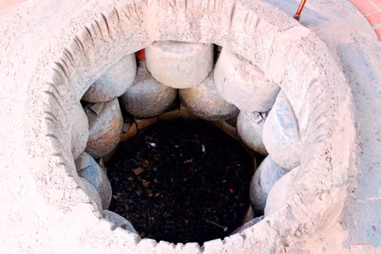 | Có những giếng cổ rất độc đáo với hệ thống thành giếng bằng cối đá xếp tròn. |