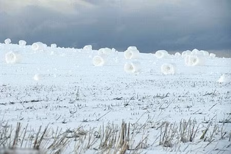 Các cuộn tuyết hình thành trên vùng đất trống bằng phẳng hoặc hơi nghiêng, bề mặt được bao phủ bởi một lớp băng nhẵn hoặc tuyết cứng. Gió sẽ làm dày thêm cuộn tuyết.