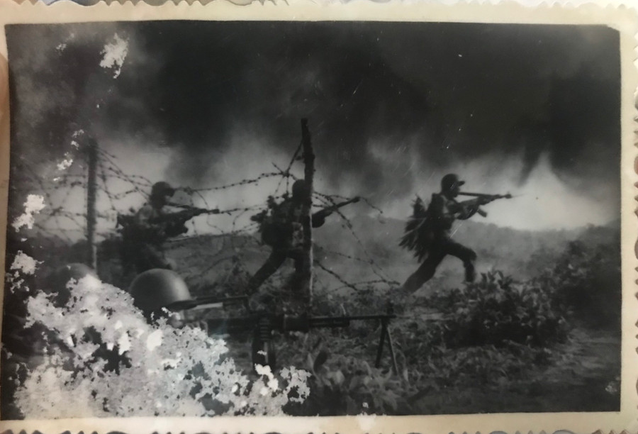 Nhưng nhiều nhất là ảnh chiến trường với đủ góc độ chân thực, bởi nó được bấm máy bởi một chiến sĩ - một nhân chứng sống. Hình ảnh bộ đội ta nằm mai phục, tiến sát đến hàng rào gai, lúc tiến lên chạy về phía quân địch, xung quanh cột khói bom cùng đất đá mịt mù…