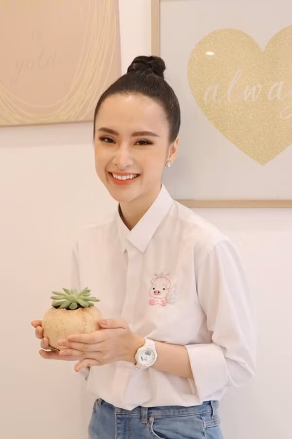 Angela Phương Trinh chọn áo thêu phối cùng quần jeans khi tham gia các hoạt động thiện nguyện vào dịp đầu năm.
