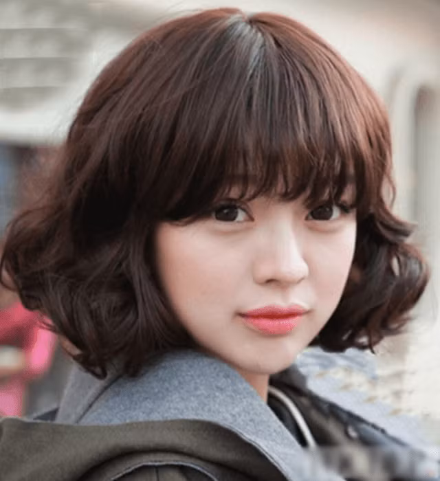Kiểu tóc xoăn ngắn ngang vai giúp bạn trở nên hấp dẫn và trẻ trung hơn. Để mái tóc này rất hợp với mái ngang uốn phồng tạo cảm giác dễ thương cho bạn gái. Với kiểu tóc xoăn ngang vai bạn có thể biến hóa theo sở thích của mình như xoăn sóng, xoăn nhẹ, xoăn nhẹ phần đuôi…