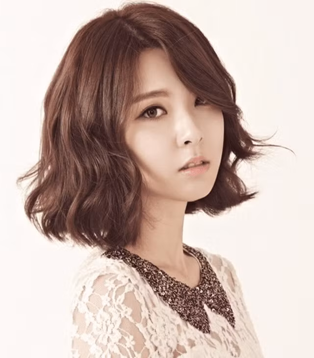 Kiểu tóc xoăn ngang vai được nhiều sao Hàn Quốc lăng xê và rất được lòng giới trẻ. Sở hữu kiểu tóc ngang vai kết hợp với mái xoăn dài hay xoăn rối tạo độ tự nhiên bồng bềnh của mái tóc mang lại vẻ ngoài điệu đà nữ tính cho bạn gái.