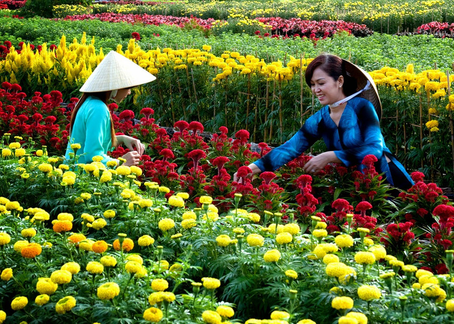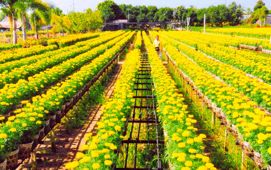 Ở Nam Bộ, lặng lẽ giữa đồng bằng là một làng hoa mà tên tuổi cũng không thua kém, đó là làng hoa Sa Đéc, tọa lạc ở thành phố cùng tên của tỉnh Đồng Tháp. Nằm nép mình bên dòng Tiền Giang, được dung dưỡng bởi phù sa châu thổ nên không chỉ mùa xuân mà hoa ở đây rực rỡ quanh năm, tạo nên một nét duyên giữa đồng bằng.