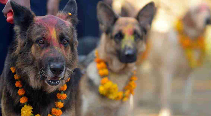 8. Lễ hội Kukur Tihar được tổ chức rất cuồng nhiệt ở Nepal. Đây là một lễ hội của người Hindu diễn ra vào tháng 10 hoặc 11 hằng năm. Vào ngày đặc biệt này, người ta cầu nguyện thần chết Yama và tôn thờ loài chó vì chúng được coi là sứ giả của ông. Những con chó được tắm rửa, trang điểm và đeo vòng hoa. Chúng cũng được cung cấp sữa và thịt để xoa dịu thần Yama.