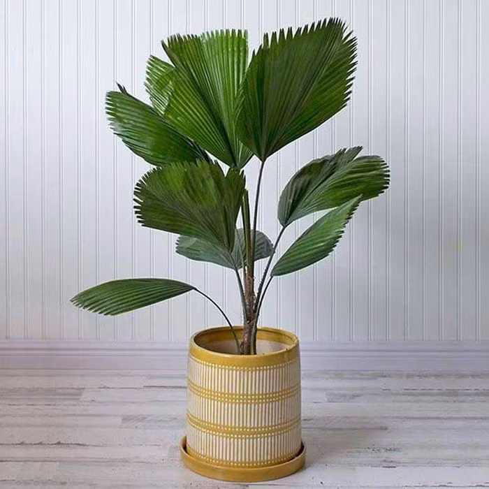 Cây cọ Nhật với những phiến lá lớn hình quạt xòe tròn tạo thành như hình cấu phễu, là loại cây phong thủy chứa đựng tiền tài, giàu sang phù hợp với người mệnh thủy.
