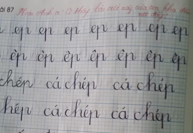 - Hoài Anh ơi! Cô thấy bài viết này của con khá đều nét đấy!