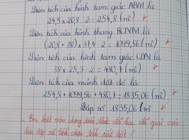 - Em viết bài đúng, đẹp, trình bày sạch sẽ. Cần phát huy!