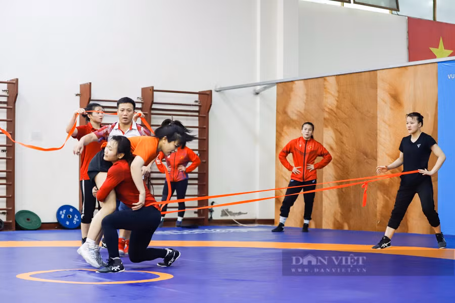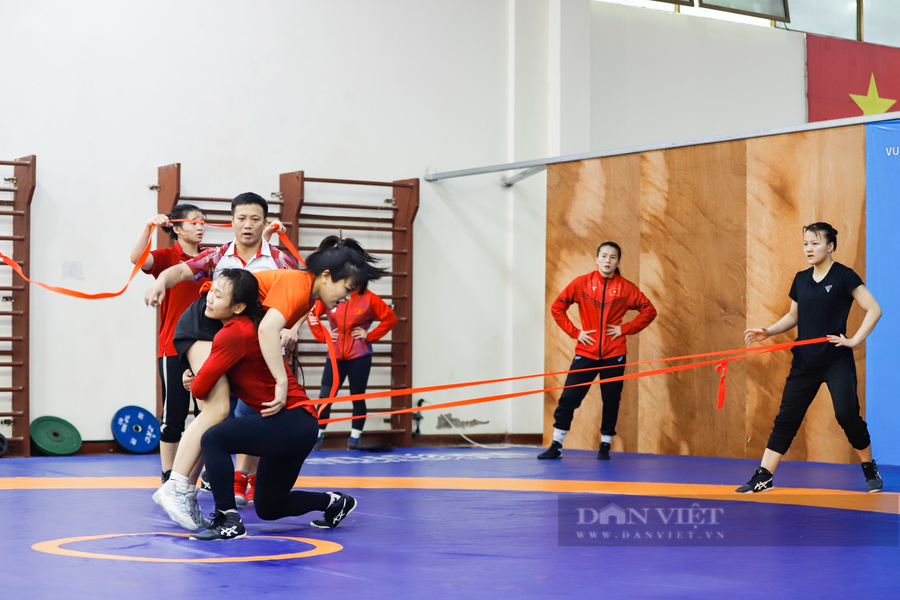 Các vận động viên thể hiện sự tập trung tối đa theo đúng giáo án đề cao cường độ mà ban huấn luyện đưa ra. HLV Nguyễn Như Cường (áo vàng) cho biết, do khoảng thời gian từ nay đến ngày khởi tranh SEA Games 32 chỉ còn khoảng chưa đầy 1 tháng, nên thời điểm này, ban huấn luyện đang lên giáo án chi tiết từng ngày, điều chỉnh cho Nguyễn Thị Tâm cùng các đồng đội đạt "điểm rơi" phong độ khi SEA Games diễn ra. "Nguyễn Thị Tâm là VĐV có tố chất đặc biệt nên dù 29 tuổi vẫn có thể chơi tốt và cho thấy mình đang ở vào độ chín của sự nghiệp", HLV Nguyễn Như Cường cho hay.