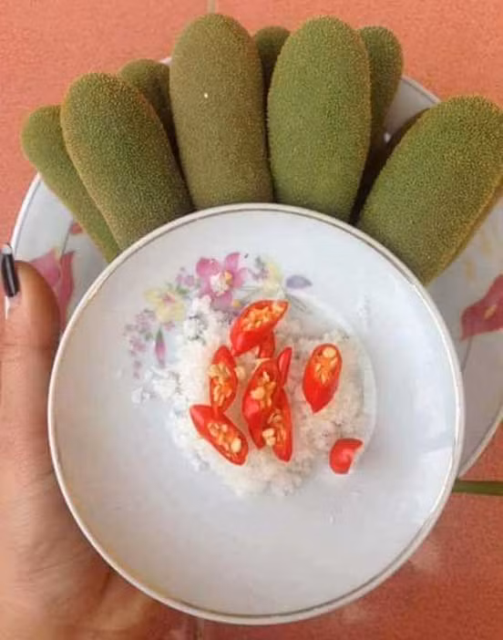 Dái mít non: Nhìn hình thôi là cả một cảm giác thèm thuồng bỗng ùa về. Giữa phố thị tấp nập của ngày nay, tìm một cây mít đã khó chứ nói gì đến những dái mít non ngon lành như thế này.