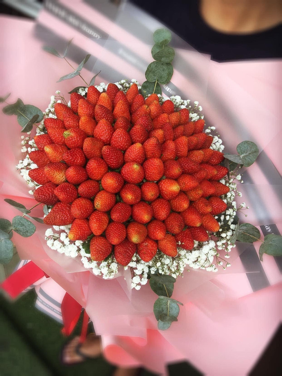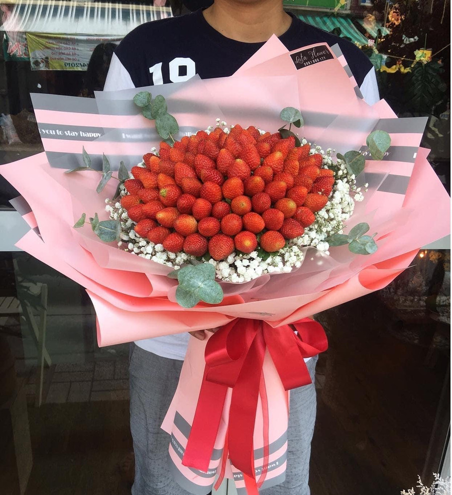 | Những bó hoa được làm từ dâu tây, cherry căng mọng không chỉ khiến các chị em ấm lòng mà còn ấm bụng. |