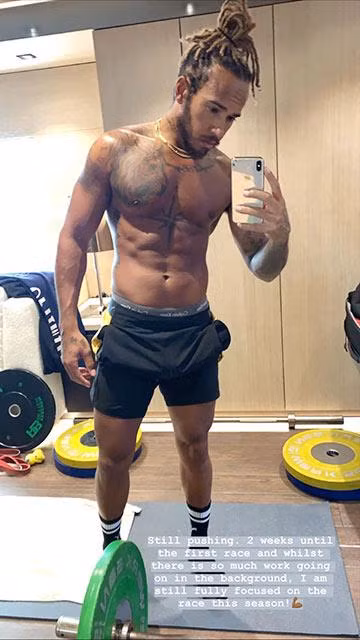 So với các đồng nghiệp ở bộ môn đua xe công thức 1, tay đua Lewis Hamilton có thân hình vạm vỡ với cơ bắp săn chắc hơn nhiều. Tay đua F1 từng 7 lần vô địch thế giới đã gây sửng sốt khi đăng một bức ảnh cho 29 triệu người theo dõi trên Instagram để khoe vóc dáng không thua kém nam thần, cùng dòng chú thích: "Tiến độ cần có thời gian, bất kể nhanh hay chậm, hãy tiếp tục thúc đẩy”. Hamilton được biết đến với phong cách thời trang khá ngầu nhưng hiếm khi chia sẻ các bức ảnh về việc cởi áo tập gym. Bởi vậy, nó càng khiến số đông người hâm mộ ngạc nhiên hơn nữa.