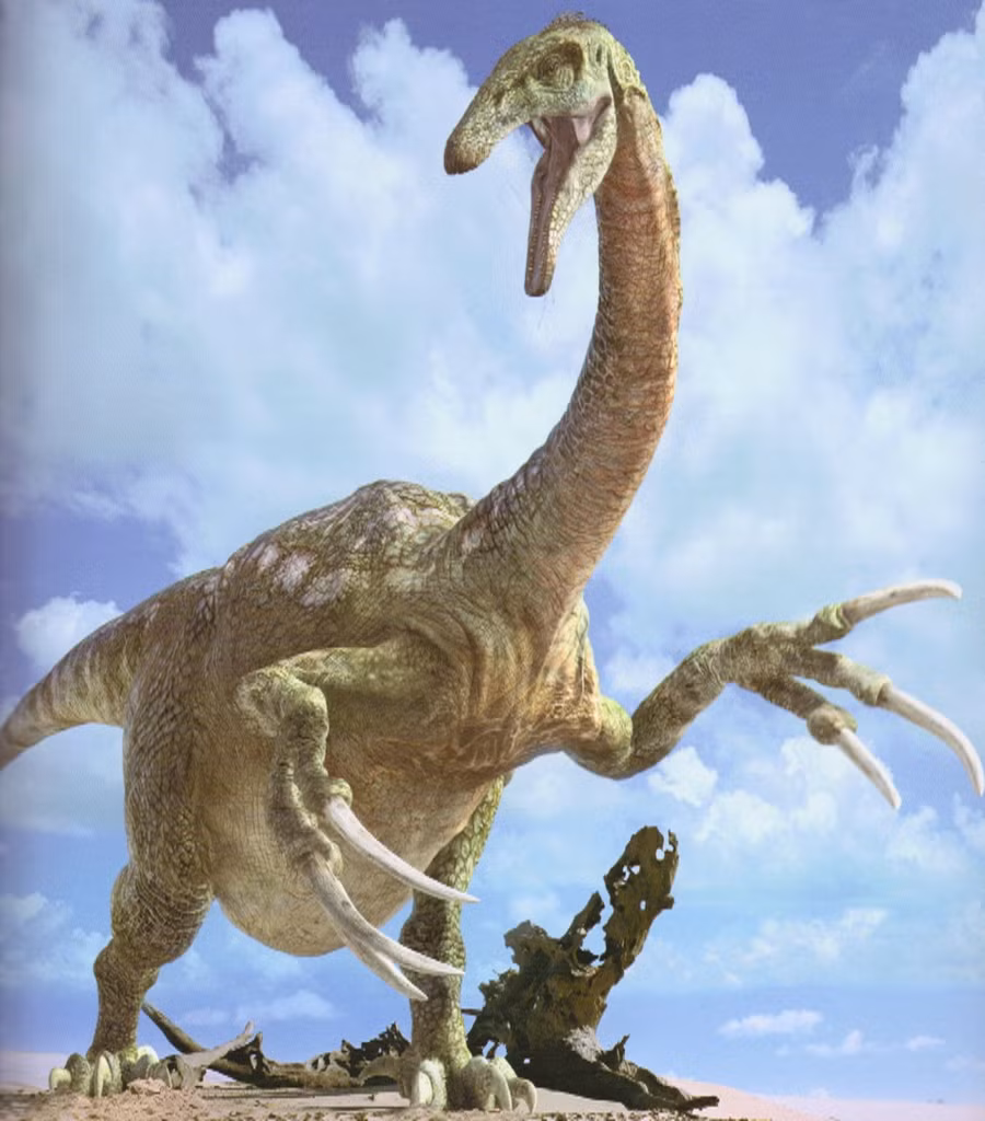 Cao khoảng 10m với những chiếc móng vuốt sắc nhọn như dao dài hàng mét, loài động vật nguy hiểm này có thể xiên chết bất cứ loài động vật nào có ý định gây hấn với nó, kể cả các loài khủng long. Mặc dù vậy, do chỉ ăn cỏ nên nếu giết chóc, loài động vật này chỉ giết cho... đỡ buồn.
