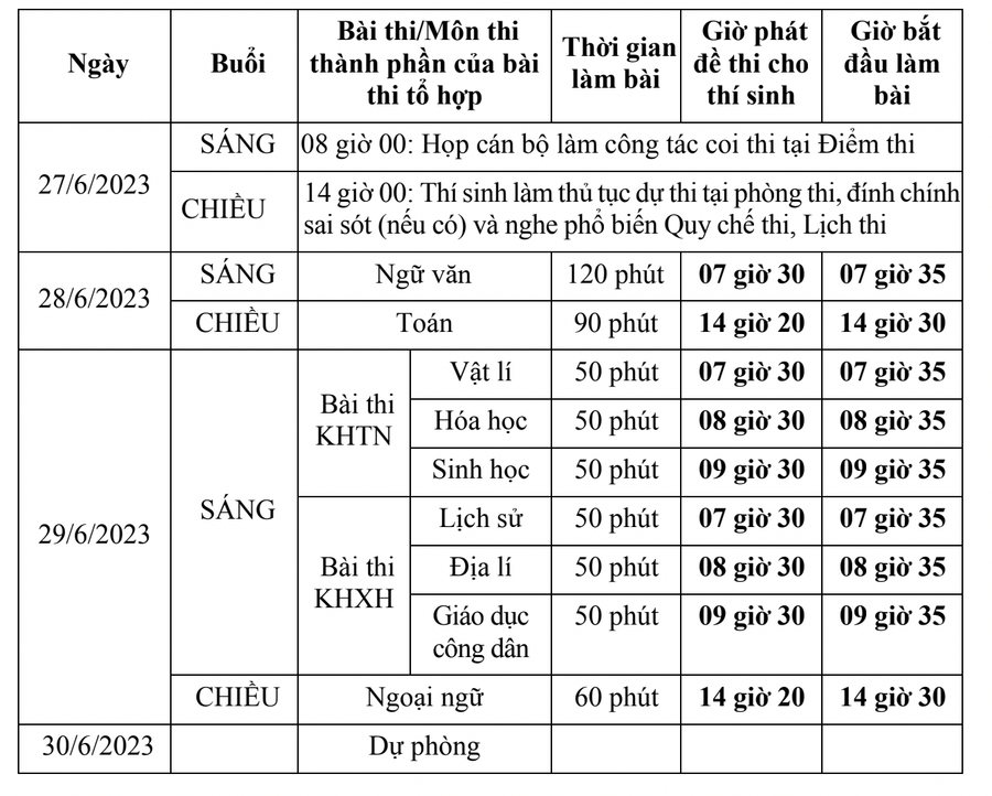 Lịch thi kỳ thi tốt nghiệp THPT năm 2023: