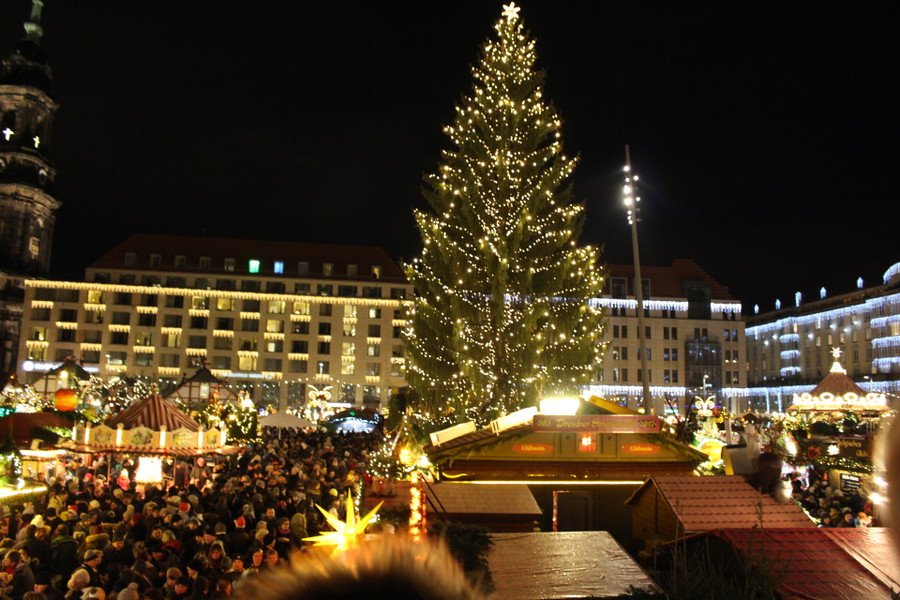 Tại Hội chợ Giáng sinh Dresden (miềnĐông nước Đức), người tới dự Hội chợ đông như trảy hội. Hiếm có hội chợ nào thu hút đông người như thế, trong đó phân nửa là du khách nước ngoài. Cũng đúng thôi vì Hội chợ Giáng sinh Dresden được coi là 1 trong 10 Hội chợ đẹp nhất và hoành tráng nhất ở Đức. Người ta đặt ngay khu trung tâm Hội chợ một cây thông lớn, cao gần bằng tháp nhà thờ. Chị Trần Thủy, một Việt kiều tại Dresden cho biết,đây là cây thông đẹp nhất vùng, được tuyển chọn kỹ từ trước Giáng sinh. Những cành thông phải cong đều, với phần lá rủ mềm xuống như chòm râu ông già Noel vậy.