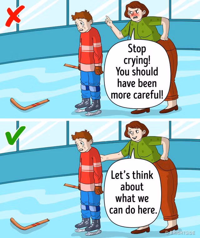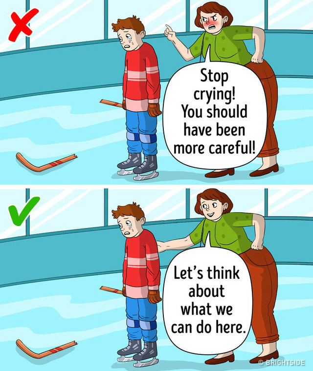Cách phản ứng thông thường của cha mẹ khi con khóc lóc, bực tức thường không có tác dụng, bởi cảm xúc tiêu cực cần phải tìm ra nguyên nhân để giải tỏa ức chế thần kinh của trẻ. Đó là nền tảng của sức khỏe tâm lý. Khả năng thể hiện cảm xúc tiêu cực là một điều cần thiết đối với người trưởng thành. Con của bạn chắc chắn sẽ cần điều này trong tương lai, vì thế hay để chúng phát triển đúng hướng ngay từ khi còn nhỏ.