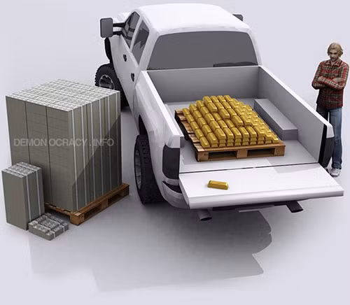 Ai cũng biết vàng khối lượng riêng rất lớn, tuy nhiên ít ai tưởng tượng được là chỉ cần số lượng vàng như trên cũng có thể phá vỡ hệ thống máy của chiếc xe tải cỡ trung bình. Và số vàng này có thể mua được khoảng 2.660 xe tải mới giá khoảng 40.000 USD mỗi chiếc.
