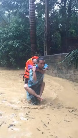 | Cõng người dân đi sơ tán đến nơi an toàn. |