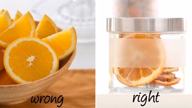 Cất giữ cam trong tủ lạnh chỉ làm nó dần dần héo đi và không còn tươi ngon. Tốt nhất bạn nên để ở nơi mát và dùng trong ngày.