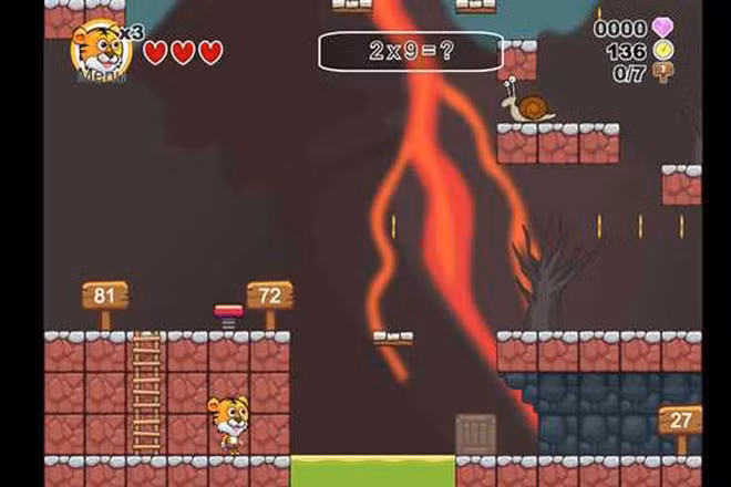 Trò chơi này cực kỳ dễ chơi với các bé nhỏ, vì chỉ cần nhớ bảng cửu chương, trả lời được đúng câu hỏi thì chú mèo sẽ tự động nhảy lên một bậc. Nào bố mẹ hãy cho con được giúp chú mèo đi tìm những món đồ mà chú ấy đã bị mất nhé.