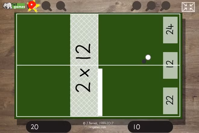 Trò chơi bóng bàn toán học này được thiết kế dành cho 2 trẻ chơi chung trên một máy tính bảng. Mỗi trẻ sẽ ở một đầu và bắt đầu thi đấu với nhau. Các con phải trả lời thật nhanh các câu đố toán học để đánh bóng nhanh nếu không con sẽ bị thua.