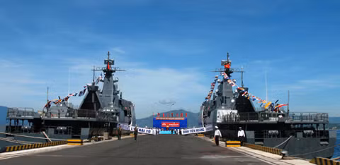 Hai tàu hộ vệ tên lửa hiện đại nhất Việt Nam trên quân cảng Cam Ranh. Ảnh: Nguyễn Nam Anh