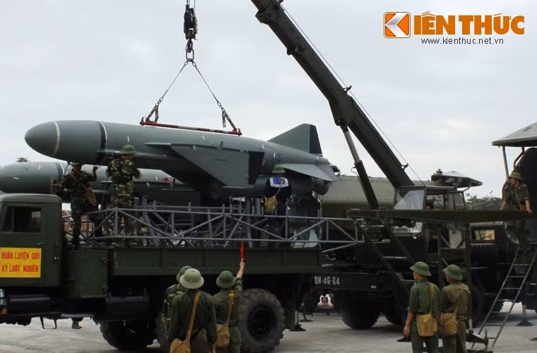 Đạn tên lửa P-15M Termit đạt tầm bắn 80km, lắp đầu nổ cực mạnh nặng đến 454kg. Trong ảnh là chiến sĩ đoàn tên lửa đang nạp nhiên liệu cho đạn.