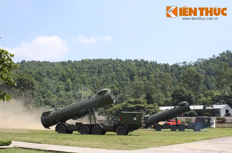 Trong ảnh là các xe phóng hệ thống tên lửa bờ “khủng” nhất Việt Nam 4K44 Redut-M của Đoàn S79 đang triển khai huấn luyện chiến đấu. Hệ thống này trang bị các đạn tên lửa chống tàu P-35 đạt tầm bắn tới 500km, vận tốc siêu thanh Mach 1,4. Với đầu đạn nặng tới 1 tấn, P-35 có thể đánh chìm các chiến hạm cỡ lớn chỉ với một phát bắn.
