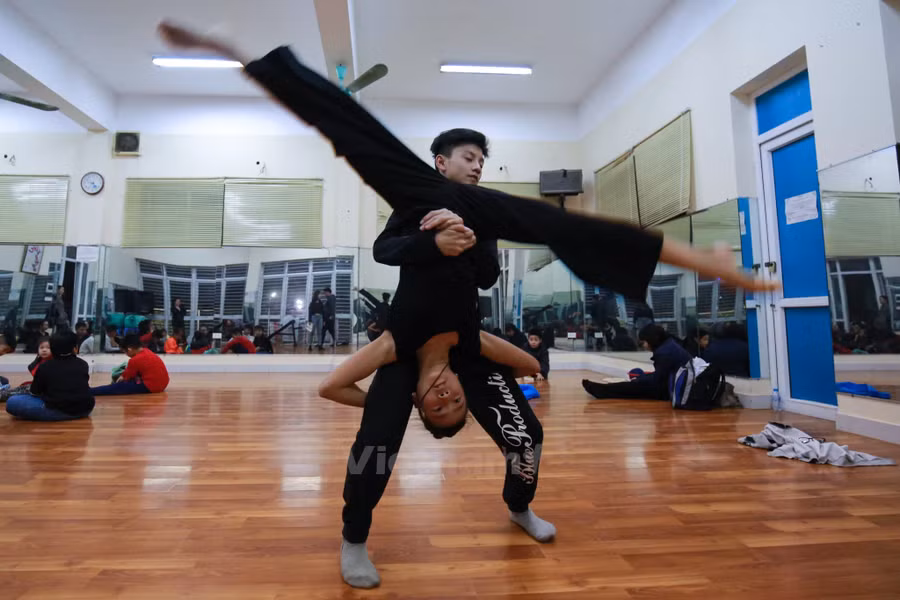 Lớp học nhảy của các vũ công nhí thuộc câu lạc bộ PRO Dance của Chu Quỳnh Trang và trưởng nhóm nhảy Big Toe Nguyễn Viết Thành. (Ảnh: Minh Sơn/Vietnam+)