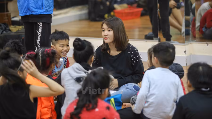 Quỳnh Trang cho biết, các bé học nhảy từ nhỏ phát huy được sự nhanh nhẹn, dẻo dai. Những bé có năng khiếu và khả năng tiếp thu tốt sẽ học rất nhanh và sớm có thành tích. (Ảnh: Minh Sơn/Vietnam+)