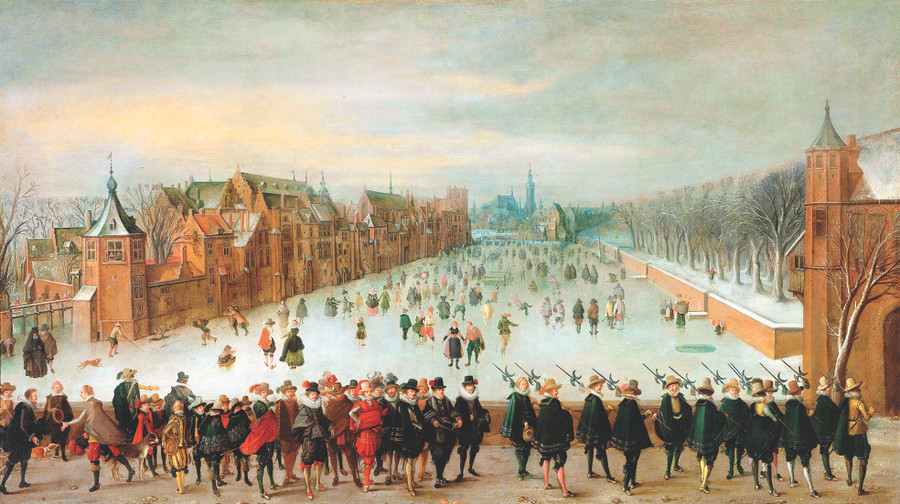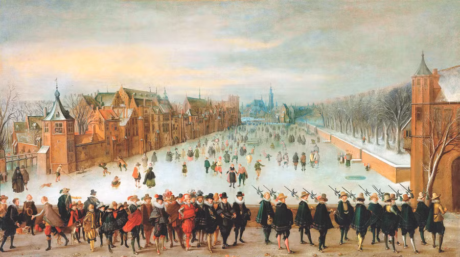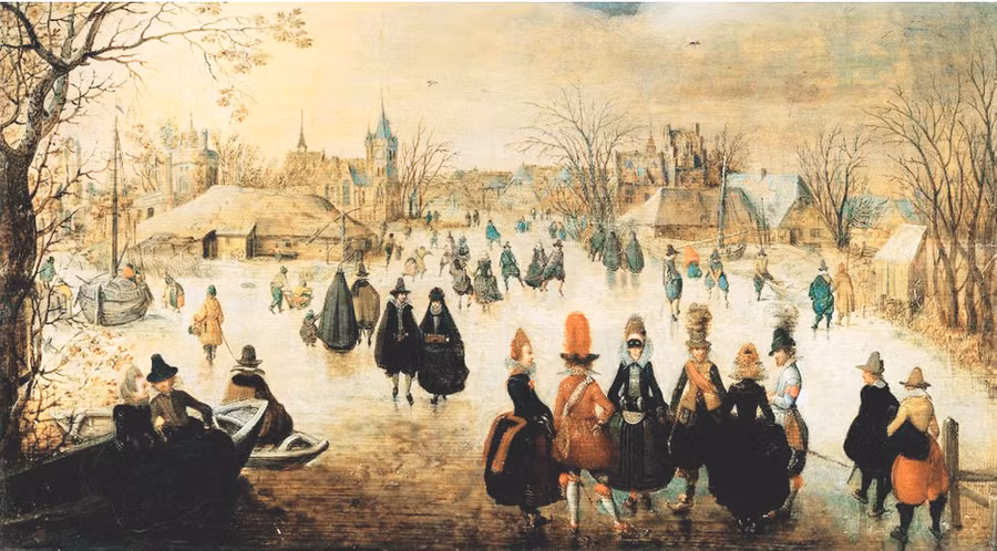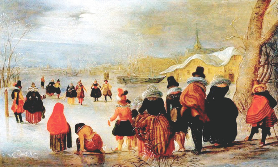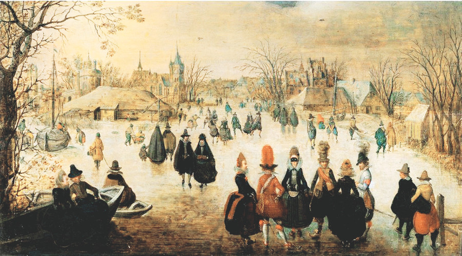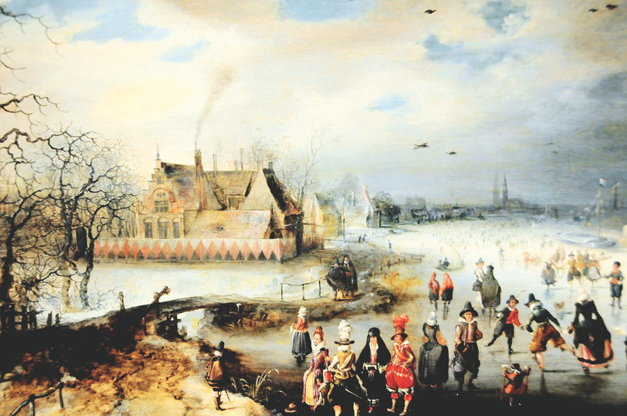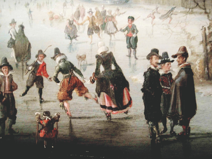 Và đặc biệt trong nhiều họa phẩm, còn thấy cảnh nhà giàu, quý tộc tụ tập, vui chơi trên băng, trên những mặt hồ, kênh ngòi đóng cứng. Ai nấy đều rất diện, vận khăn áo ấm áp, đi những đôi giày có lưỡi nhọn giúp trượt lướt dễ dàng trên băng. Nếu không chú ý tới những mảng trắng chỉ tuyết, thì người xem sẽ nhầm tưởng đó là một ngày hè nhộn nhịp.