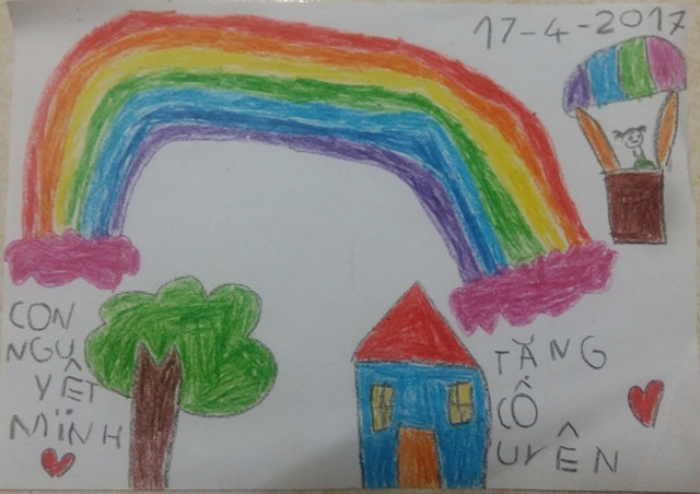 Tôi hỏi: Vì sao con lại tặng cô? Con trả lời dễ thương vô cùng: Vì con yêu cô; rồi thơm một cái vào má tôi rồi ngại ngùng chạy về lớp.