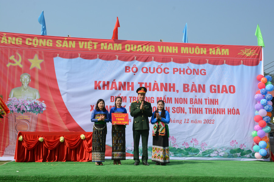| Thiếu tướng Ngô Thanh Hải "Công trình điểm Trường Mầm non bản Tình thể hiện tình cảm, trách nhiệm của cán bộ, chiến sĩ Quân đội nhân dân Việt Nam đối với thế hệ tương lai của đất nước. |