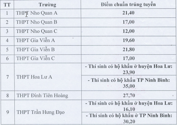 Trường THPT Hoa Lư A, Đinh Tiên Hoàng, Trần Hưng Đạo thông báo cho những học sinh có hộ khẩu thành phố Ninh Bình không trúng tuyển vào trường; có nguyện vọng, có điểm thi bằng hoặc cao hơn điểm chuẩn của Trường THPT Ninh Bình - Bạc Liêu nộp hồ sơ để xét tuyển vào Trường THPT Ninh Bình - Bạc Liêu.